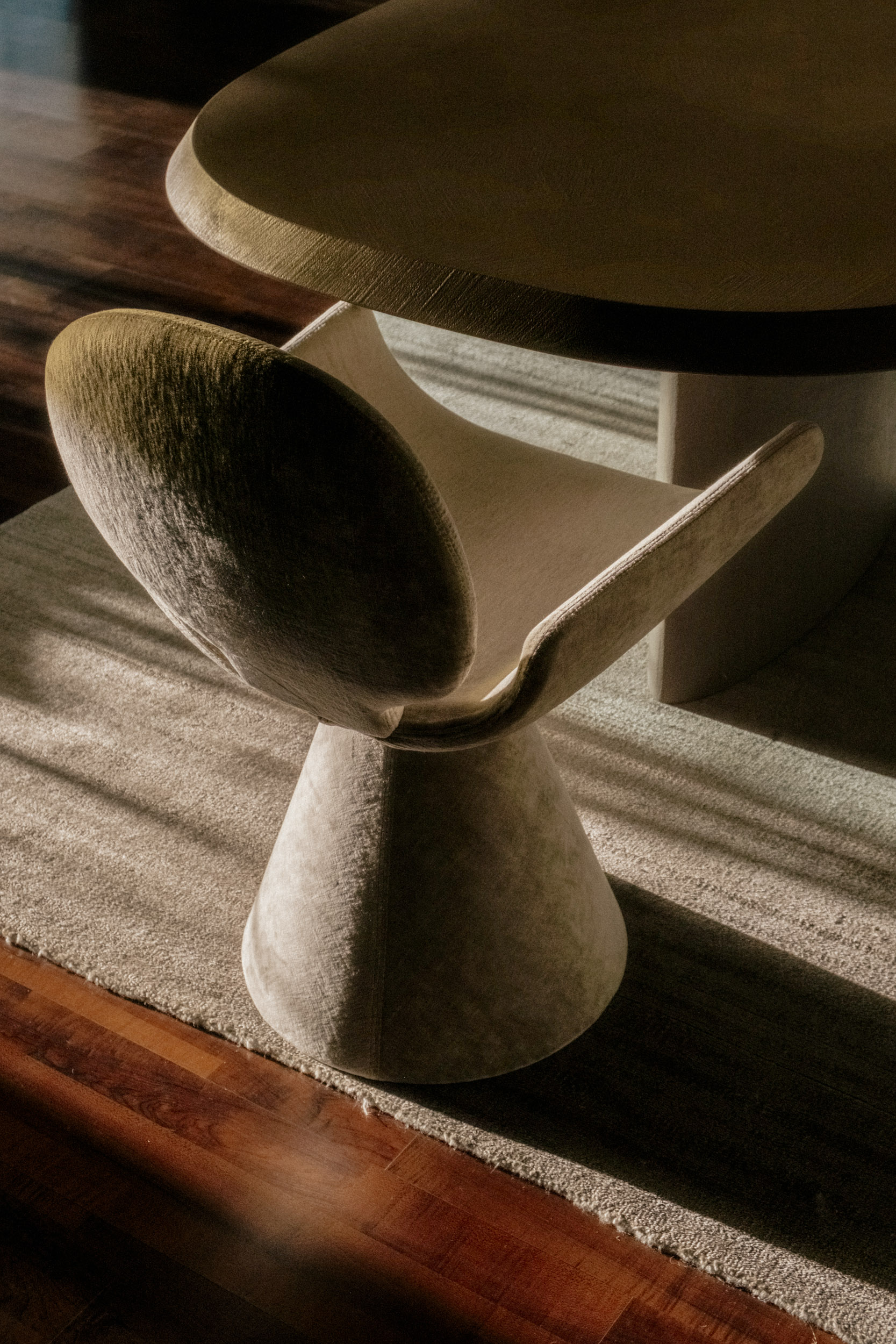 Il suo profilo posteriore richiama una figura umana stilizzata, quasi un gesto di accoglienza: una forma morbida e avvolgente pensata per offrire comfort ed eleganza.