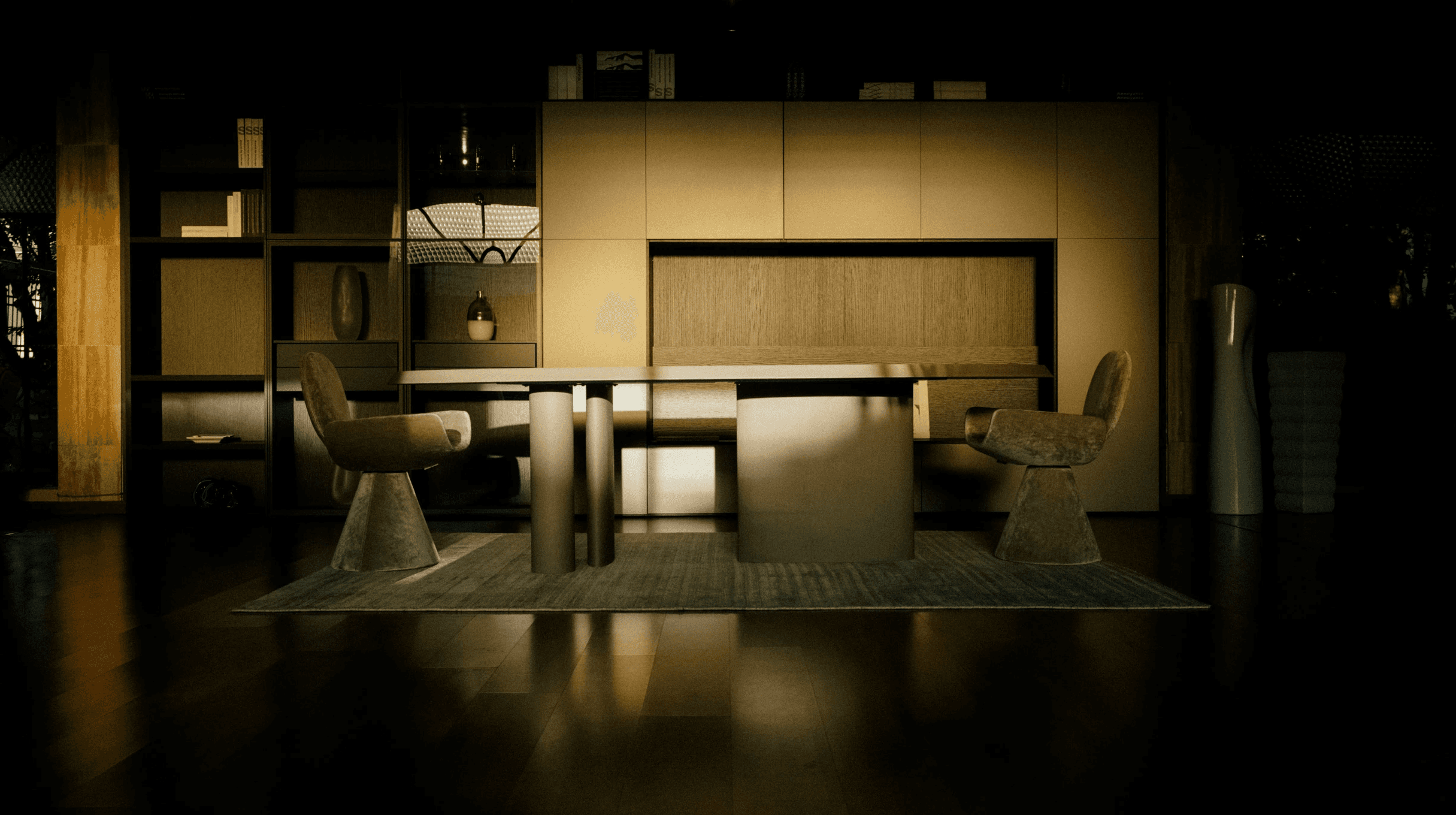 Il tavolo Padiglioni di Bonaldo, disegnato da Alain Gilles, nasce da un’ispirazione iconica: il Padiglione di Barcellona di Mies van der Rohe.